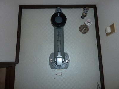 給排水工事が終わり便器をセットします。便器の裏側にはとても複雑な装置がたくさん付いています。どれも精密機械なのでいつもより慎重にセットします。