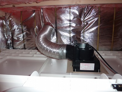 普段見ることの出来ないユニットバス裏の換気配管の状況です。曲がりを少なくし排気を良くします。